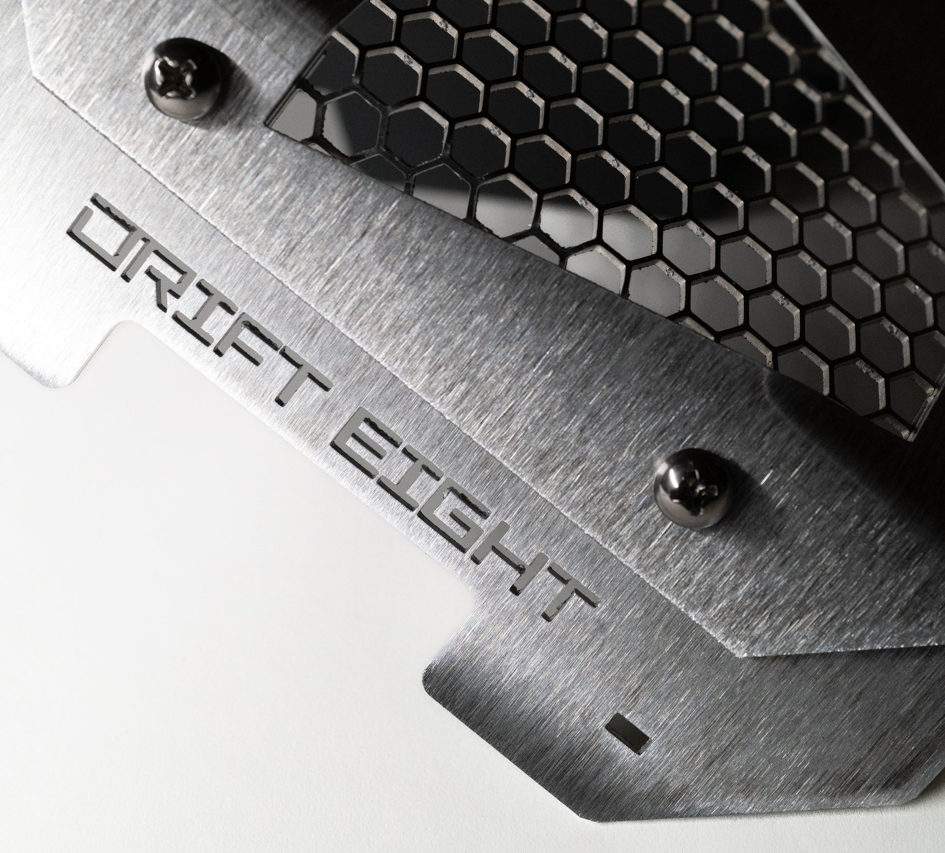 3 piece kit. Aluminum front plate with custom Offline engraving, mounting plate, and honeycomb vented plate. Vented kit pieces come powder coat/spray paint finish ready.